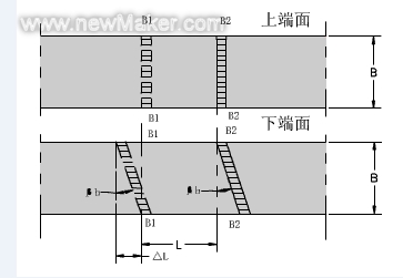 上半图直尺传动中,一对齿轮在B2B2和B1B1处进入和脱出啮合,其啮合区为L.下半图斜齿传动中,也是在B2B2处进入啮合,但是在齿宽方向是逐渐进入啮合的,同样在B1B1处脱离也是逐渐的,这样其实际啮合区比直齿的啮合区增大了ΔL,因此其齿面接触状况更好。